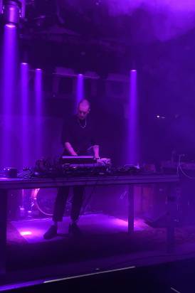 Im Anschluss gab sich Toben Piel aka "Das Kinn" die Ehre und diese Show war vom Anfang bis zum Ende das absolute Highlight für mich an diesem Abend. Punk Attitude, schmissige, wortgewandte Texte, eine überbordende Ladung Synth Electro Wave mit weirden Samples und ab ging die Post. Berghain-Falco triffts wohl am besten, er zuckte, schrie, eskalierte und prügelte seine mahnenden, oft witzigen und immer sehr gut überlegten Lyrics in die PMK. Die Anwesenden hatten Spaß und genossen diese schräge Soundparty gleichermaßen wie wir als Veranstalterteam.