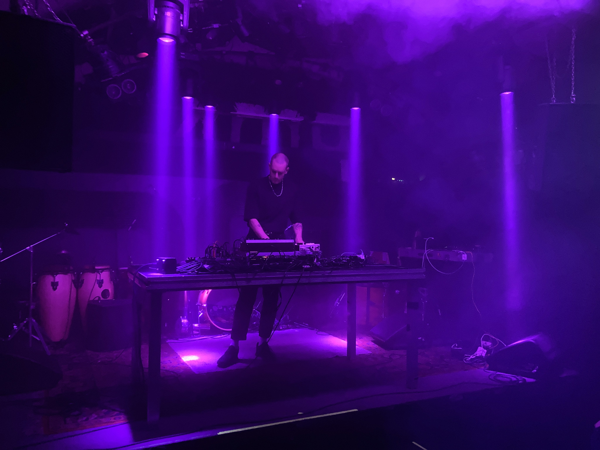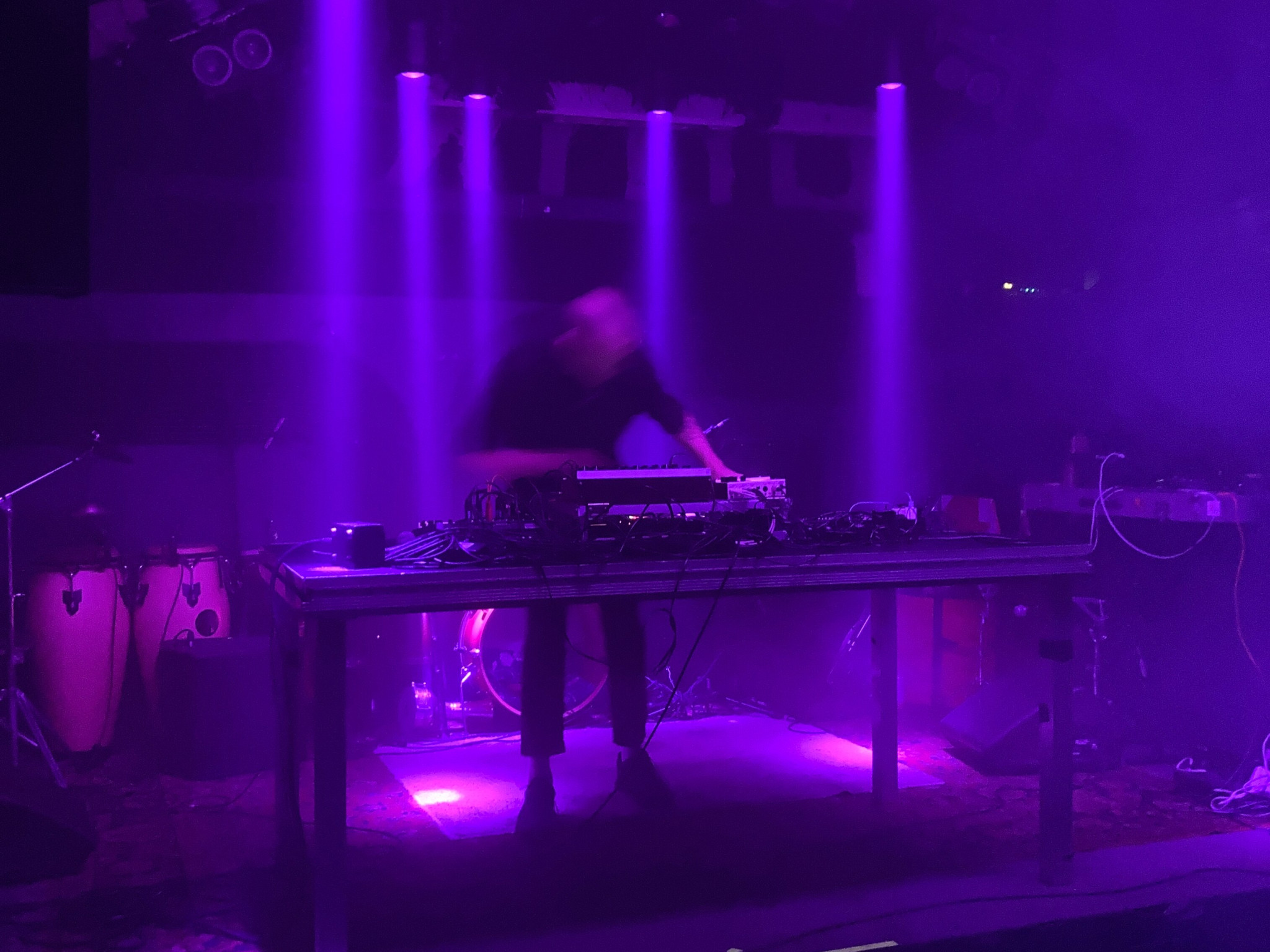 Dann gabs wieder einen längeren Umbau um für ||Ala|Meda||, eines unserer Highlights vom PFF 2023 alles fertigzumachen. Die 5 Polen waren auch an diesem Abend wieder in einer Spielfreude die sensationell war. Sie produzierten einen eklektischen Mix aus Gqom, Vaporwave, Krautrock gemischt mit Afro-Karibischen Rhythmen und einigen mehreren Bestandteilen die eigentlich nicht zusammenpassen können. Mit Drums, Bass, Percussions, Electronics erzeugen sie einen hypnotischen Sound, der am neuen Album nochmal verfeinert rüberkommt. Ob sie da in moderne Gefilde der Club Music abtauchen oder Anleihen von Afrobeat verwursteln, es spielt eigentlich keine Rolle. Gegensätze und Unvereinbares werden bei ihnen ganz locker kombiniert.