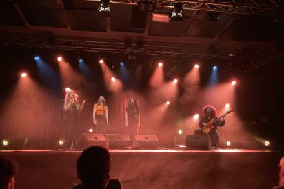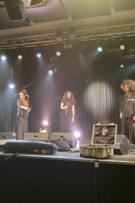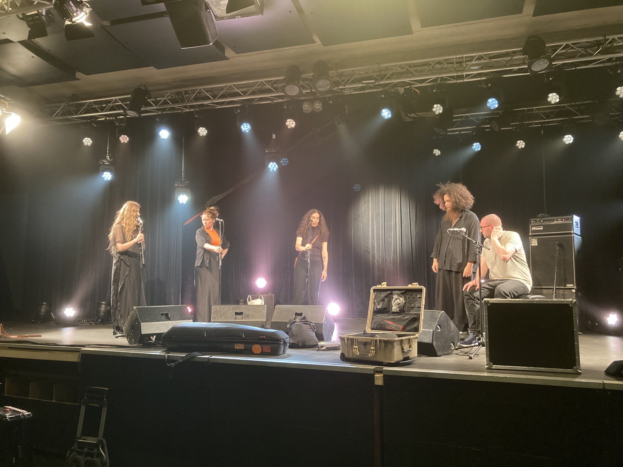 Das Konzert ließ absolut keine Wünsche offen, sie spielten alle Songs ihrer EP und einige neue Stücke, die wir später dieses Jahr hoffentlich auf ihrer ersten Platte finden können. Den Sound zu beschreiben ist wahrlich schwierig, weil das wieder mal so ein Beispiel an Musik ist, die dir live in einer Kurzweiligkeit die Gänsehaut aufzieht und dieses mystische Element einfach an einem Ort mit der Musik live erlebt werden sollte. Es singen die drei Frauen in ihrer eigenen, den Vögeln angelehnten Lautsprache und Cassius spielt mit seinem Bass und etlichen Effektgeräten die musikalische Untermalung dazu oder wie man will, er bringt das Grundstück in diese Musik mit ein und gemeinsam erzeugen sie einfach BITOI - Sound!