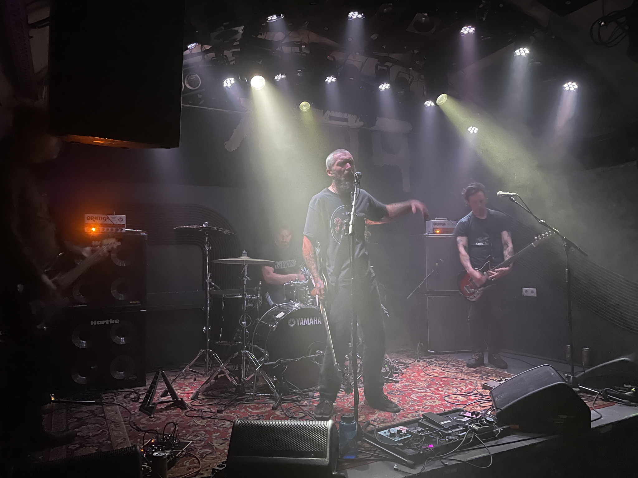 GNOD stellten an diesem Abend in beeindruckender Manier und mit der dementsprechenden Lautstärke und einer gehörigen Portion Nachdruck klar, dass sie im Noise Rock eine der besten Live Bands sind. Vielerorts wurde vom "Konzert des Jahres" gesprochen. Es war fantastisch mit anzusehen, wie die nach sechs Wochen Tour schon leicht ermüdete Band auf der Bühne komplett aus sich herausging und ein Set performte das an druckvoller Sounddichte und Spielfreude keine Wünsche offen ließ.