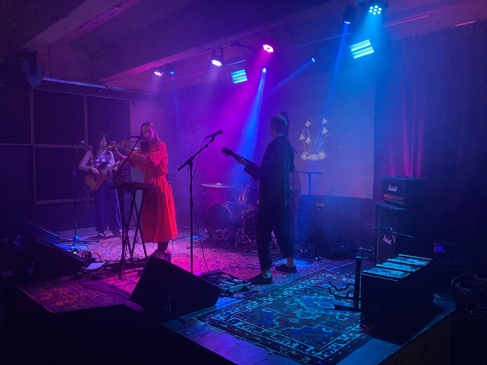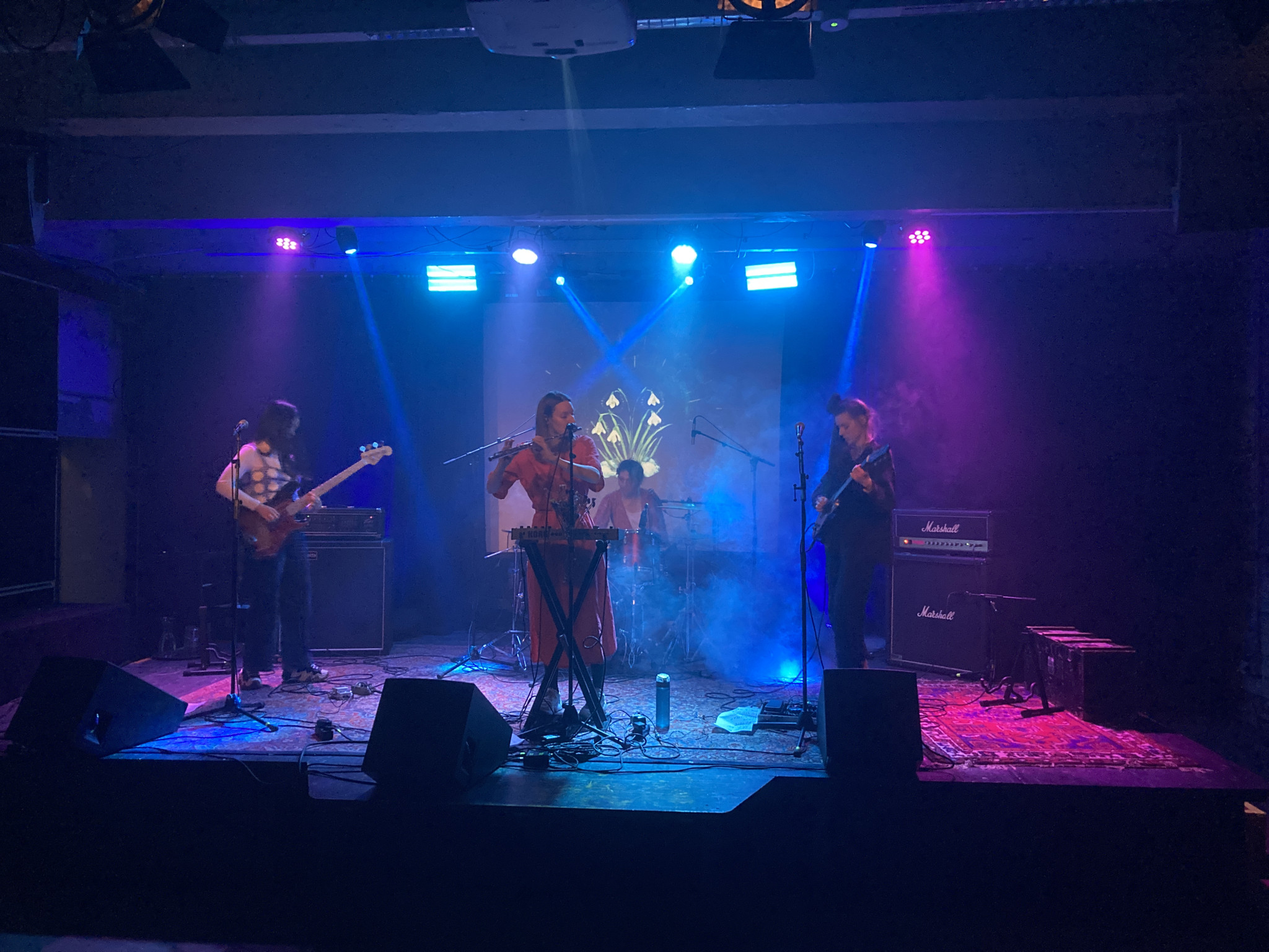 Lucidvox waren düster, psych-rockig und dann aber immer wieder virtuos mit gekonnt eingesetzten Flötenelementen dazwischen. Gar nicht esoterisch, eher als schwebende Ebene in den Sound integriert und dazu noch den aufhellenden Gesang, der aus dem ganzen Sammelsurium eine mitreißende Mischung entstehen ließ. Atmosphärische Texturen die immer einiges an Schönheit zu bieten hatten. Ein ganz eigener Sound, auch für Glitterbeat etwas ganz Neues und dass hier vier Frauen am Werk sind find ich einfach nur großartig und fantastisch.