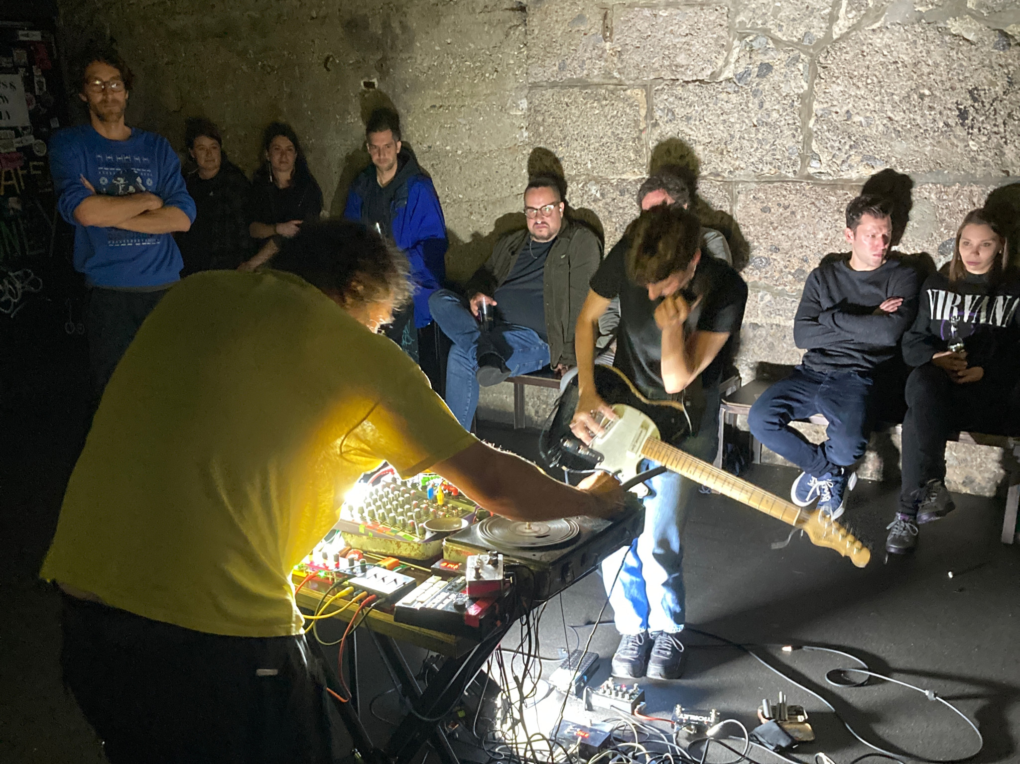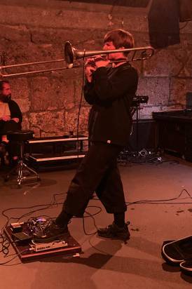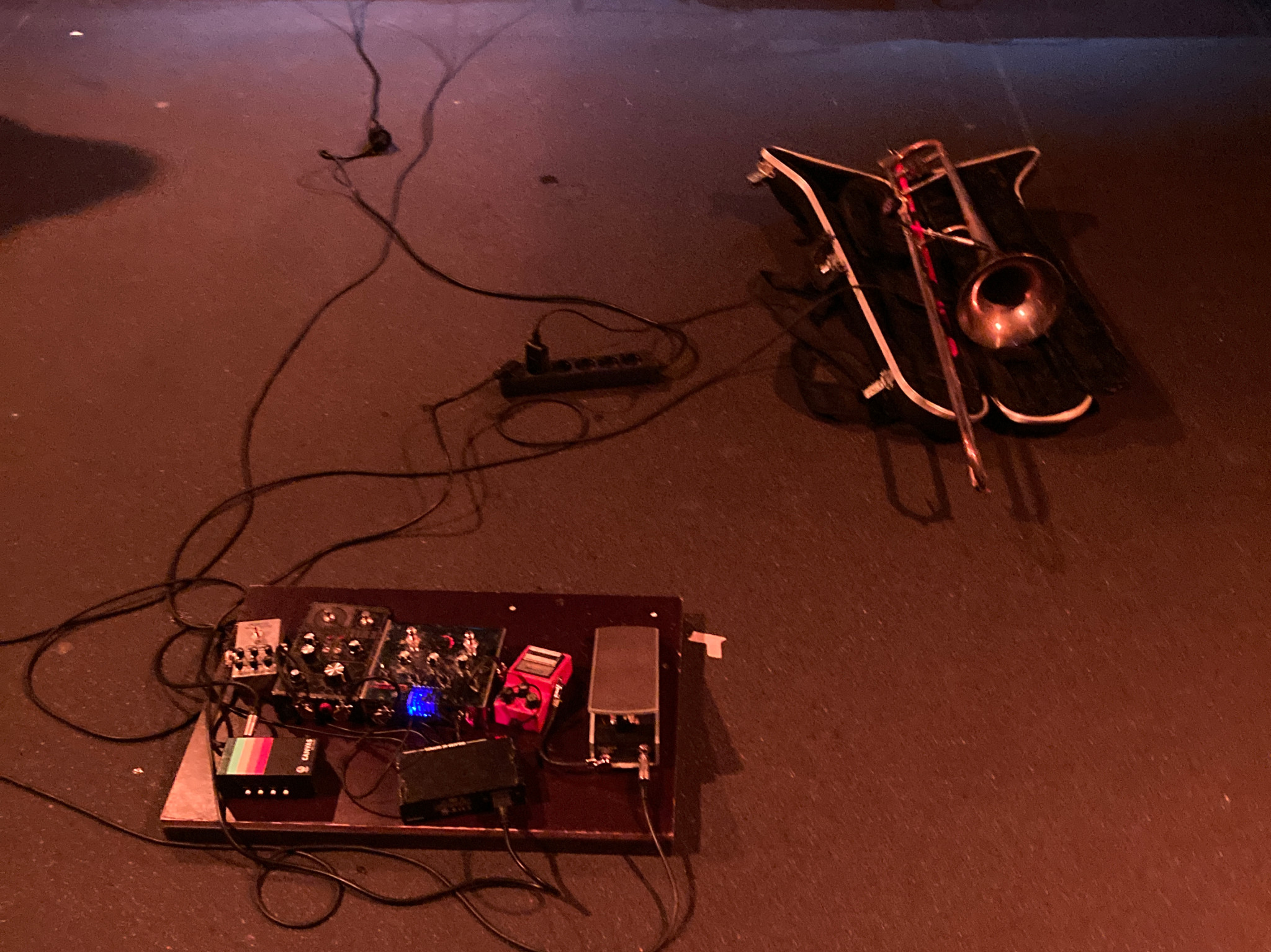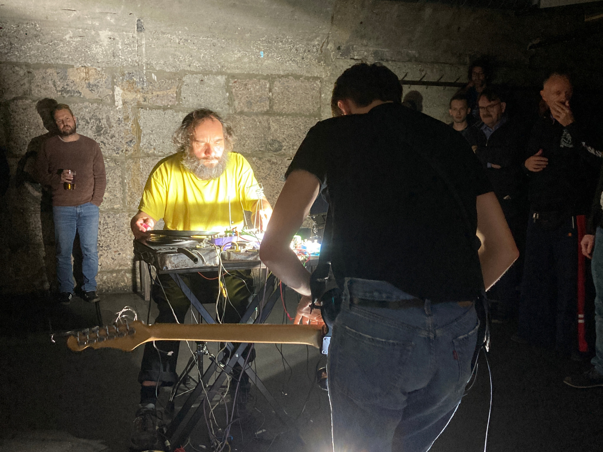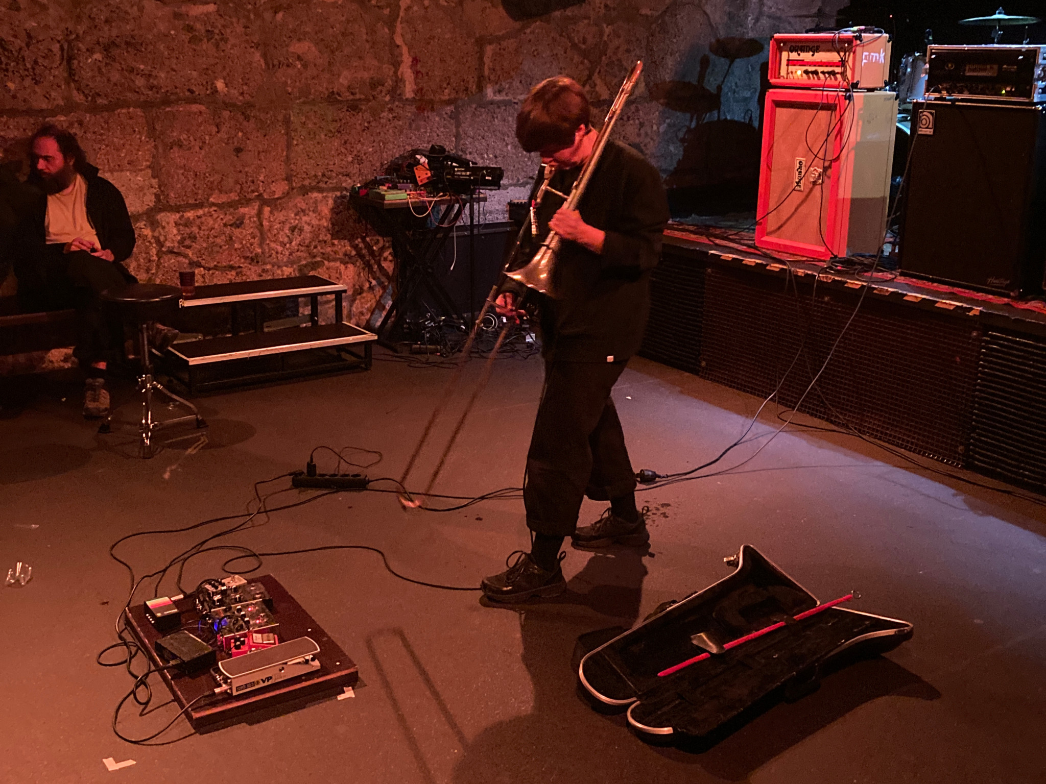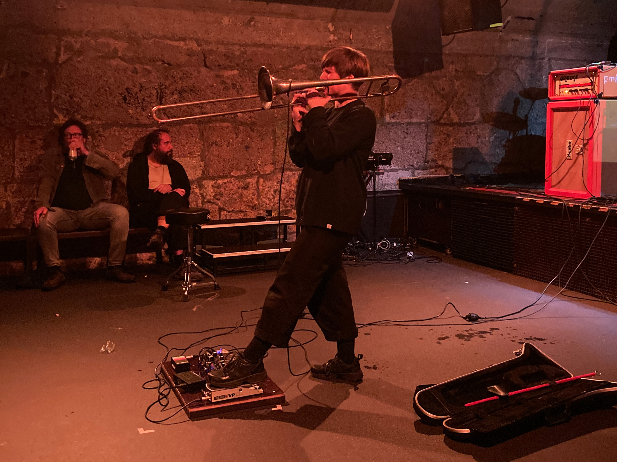 Sehr vehement und klar gings los mit Maria Bertel und ihrer Solo-Drone-Posaunen-Performance. Mitten im Raum zelebrierte sie über knapp 25 Minuten ihre wundervoll eindringliche Kunstform. Autoreverse - Nina und Arnaud ließen danach Spannungsbögen aufeinanderprallen. Noise Gitarre und Analog Electronics wirbelten den Raum durcheinander.