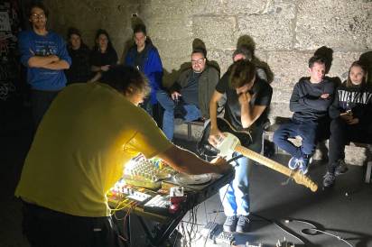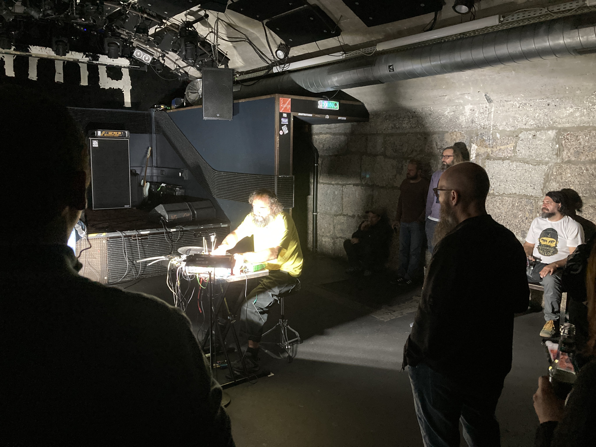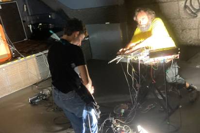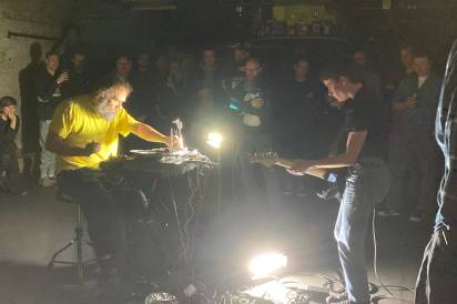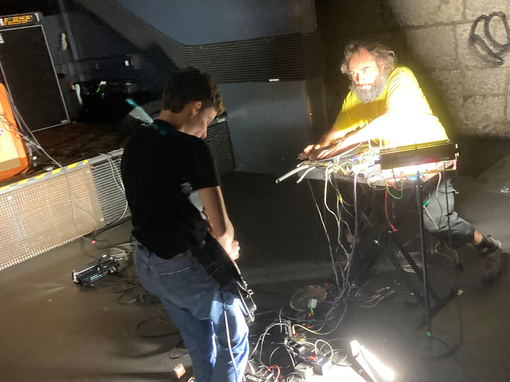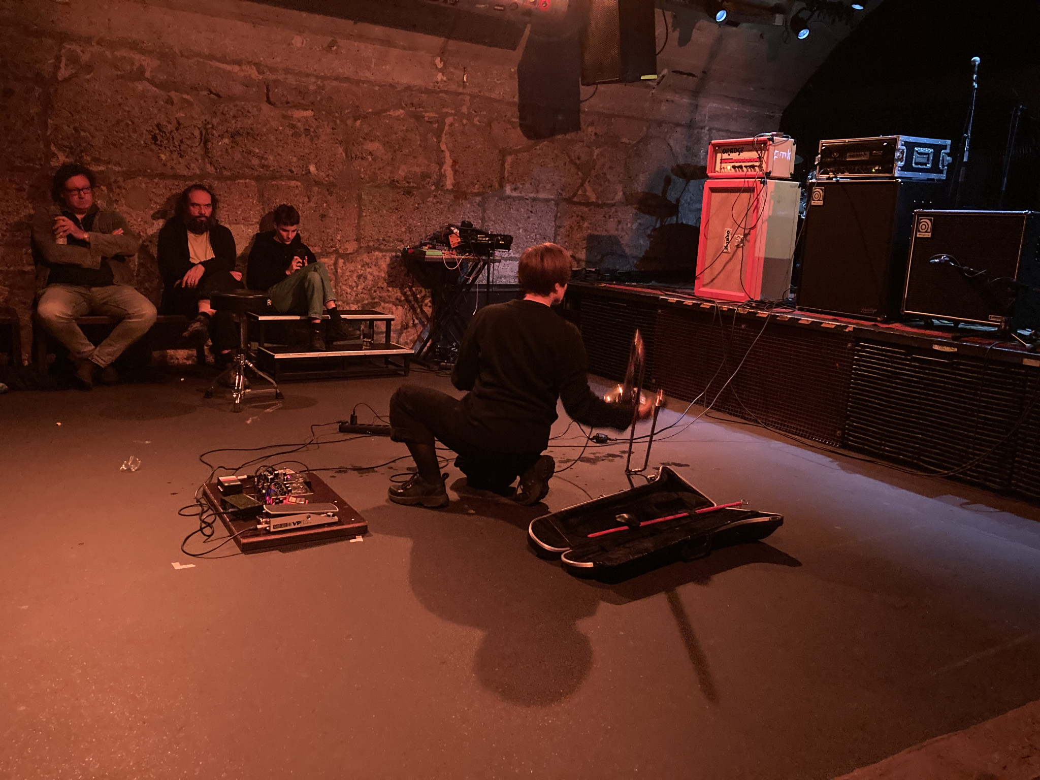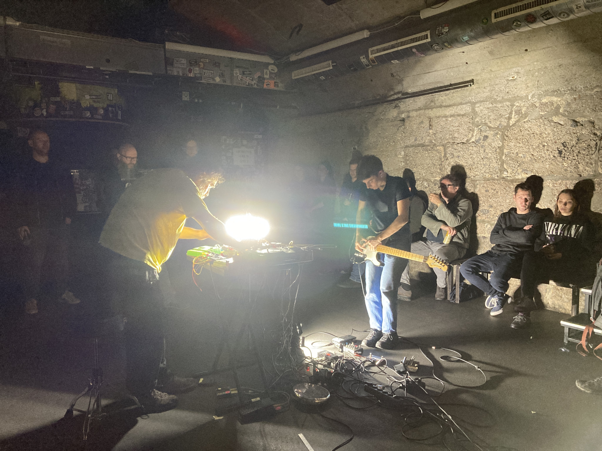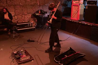 Sehr vehement und klar gings los mit Maria Bertel und ihrer Solo-Drone-Posaunen-Performance. Mitten im Raum zelebrierte sie über knapp 25 Minuten ihre wundervoll eindringliche Kunstform. Autoreverse - Nina und Arnaud ließen danach Spannungsbögen aufeinanderprallen. Noise Gitarre und Analog Electronics wirbelten den Raum durcheinander.
