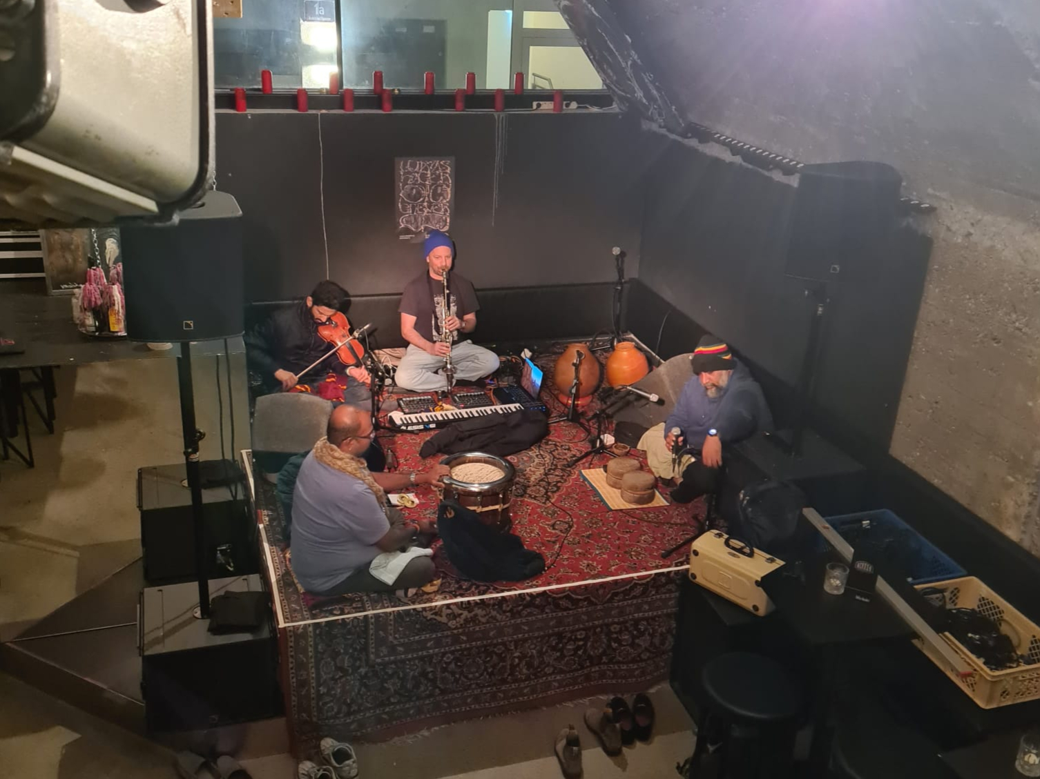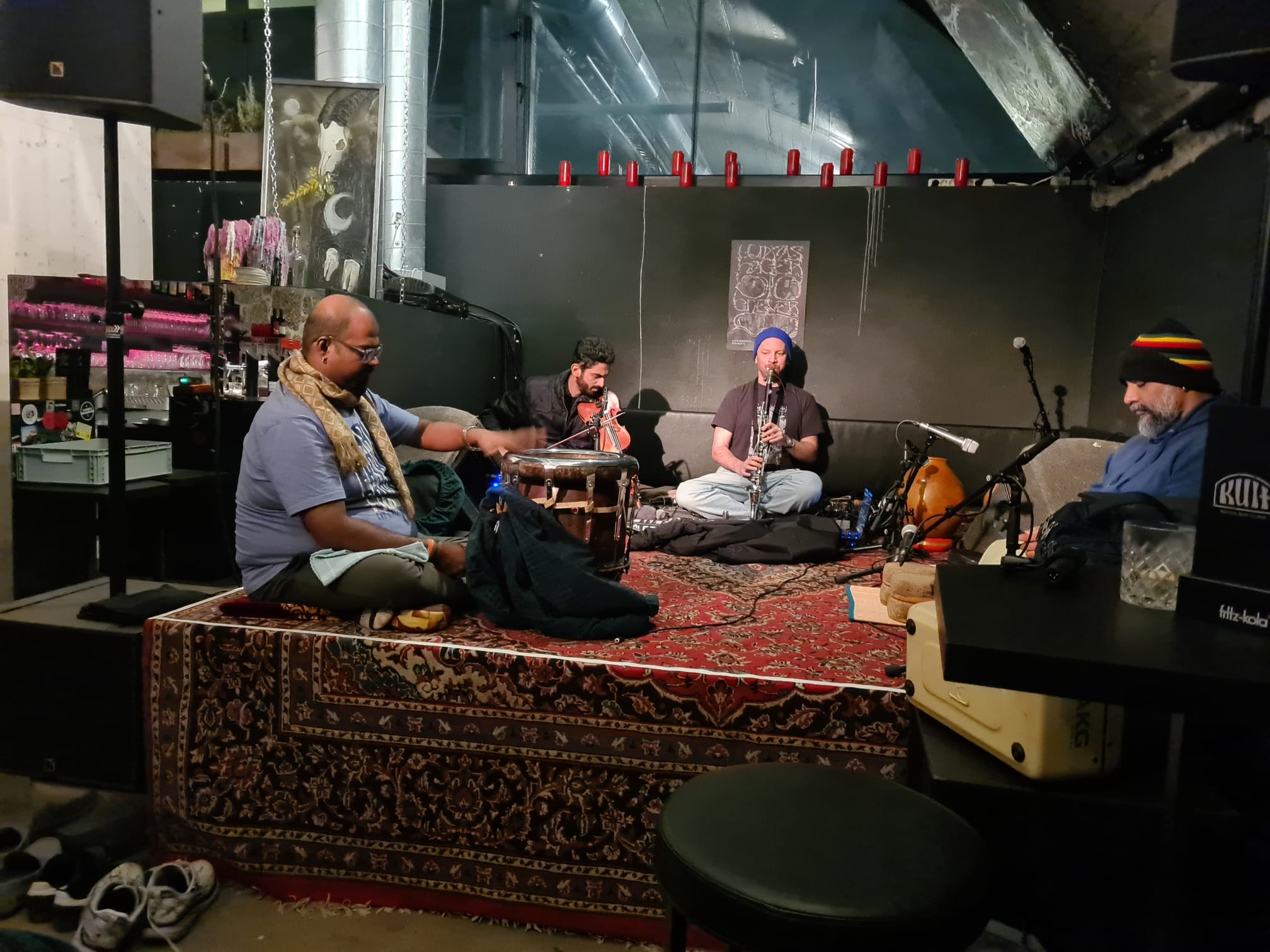 Die letzte Unterton Veranstaltung 2024 sollte nochmals etwas ganz Spezielles werden. Wir hatten die Ehre dieses lebendige und vielfältige Quintett bestehend aus vier indischen Musikern und dem Dirigenten und Komponisten Waclaw Zimpel aus Polen ins Kult einzuladen. Ein lustiger verspielter Haufen Musiker die handwerklich extrem gut gerüstet waren und dazu eine Spielfreude entwickelten, die ich so auch selten erlebte. Die Songs sind schon sehr abenteuerlich strukturiert und passen eigentlich in keine Schublade so richtig rein. Zwischen repetitiv hypnotischen Rhythmen, entstanden warme Melodiebögen, die immer einen indischen Klangkontext beiwohnten und darin ihre Runden drehten.